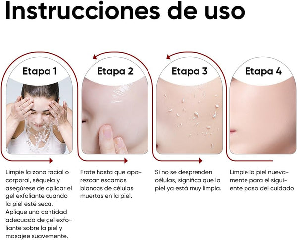 El gel exfoliante mejora la textura de tu piel, aclarándola y dejándola suave. Disfruta de una limpieza profunda que revitaliza tu rostro cada día.